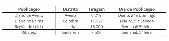 • Diário As Beiras, com 5 inserções (Coimbra)